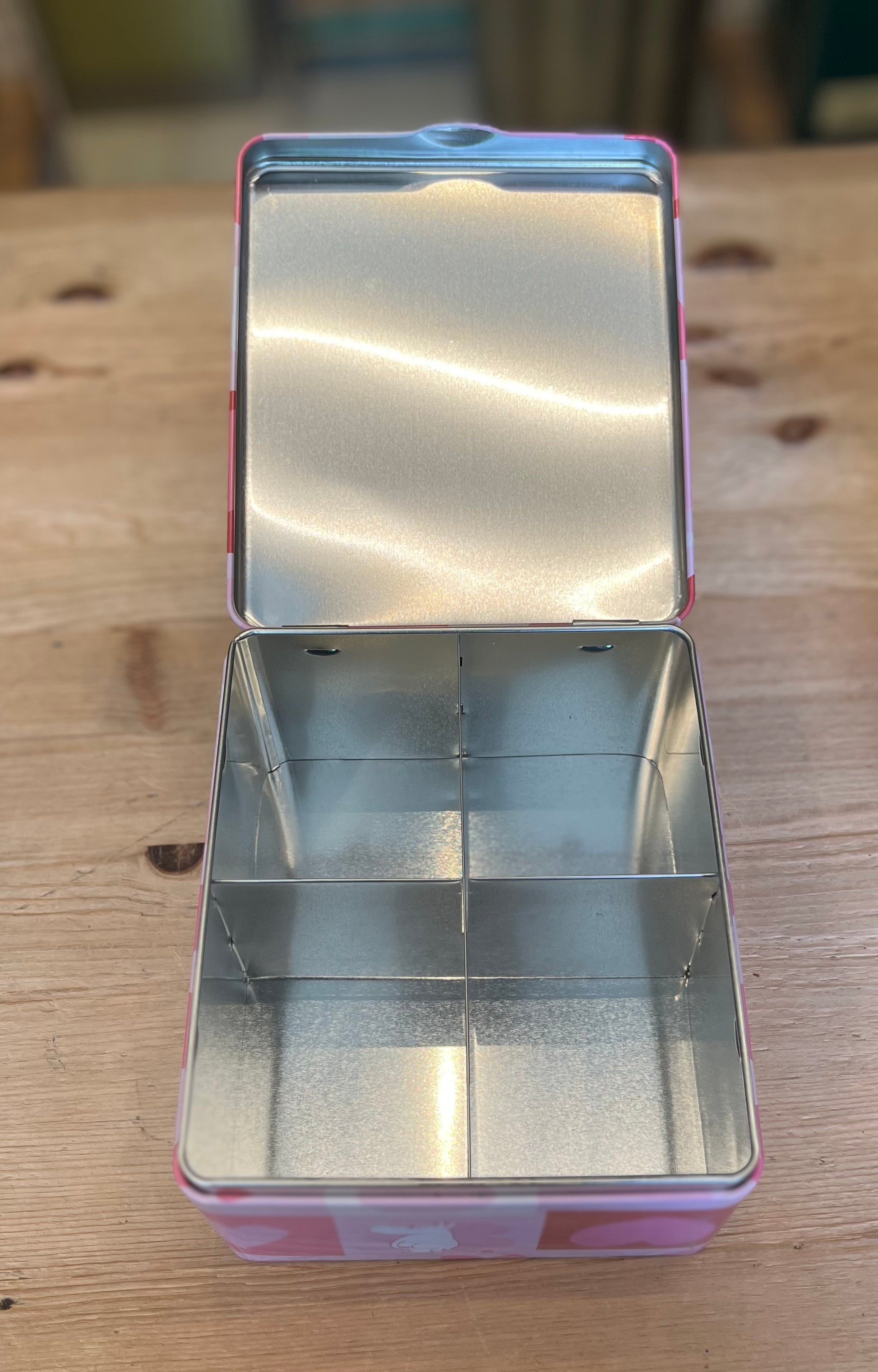 Härlig burk för att sortera och se dina tepåsar. Fyra fack ryms i den här Mumin burken.
